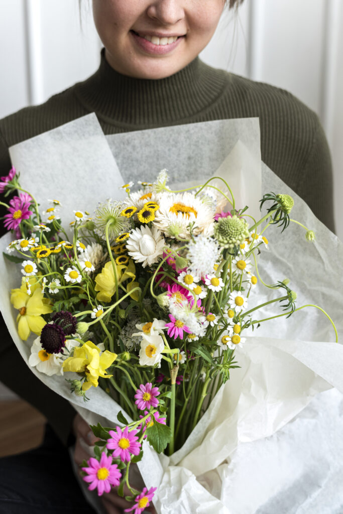 Alle våre buketter og dekorasjoner lages for hånd, med friske blomster av høy kvalitet. Som en lokal familiebedrift er vi stolte av å tilby noe ekte og unikt, langt unna masseproduksjon og kjedebutikker.
